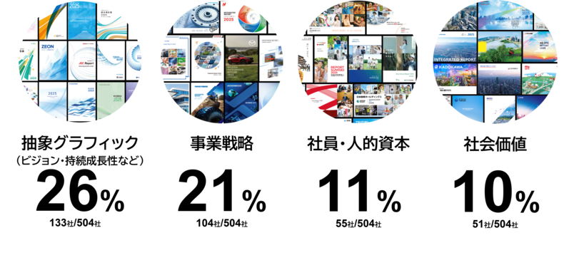 分析の結果、近年の統合報告書表紙にはいくつかの代表的な傾向が見られました。
