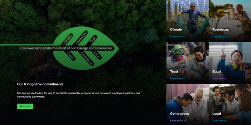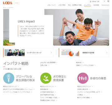 企業サイトに「インパクト」というカテゴリーを設け、「インパクト戦略」にもとづく3つの優先取り組み分野(「グローバルな衛生課題の解決」「水の保全と環境保護」「多様性の尊重」)を強調。それぞれのKPIや取り組みを明確にし、サステナビリティに対する企業の姿勢が端的かつ鮮明に伝わる構成となっています。