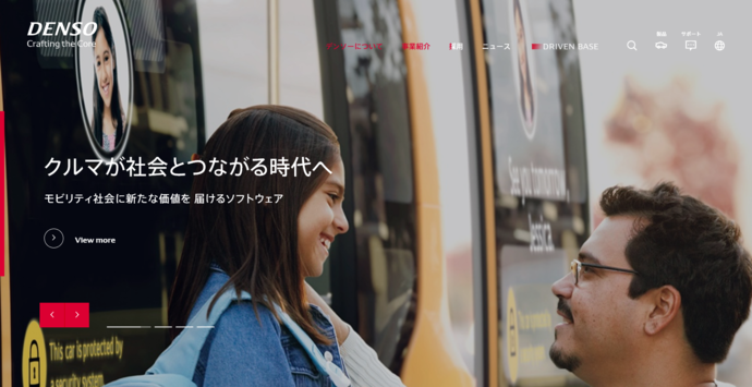 中長期的な視点で企業を評価する動きが強まる中、「サステナビリティ」つまり社会課題解決への取り組みや「イノベーション」を重視する姿勢をどう伝えるかは、多くの企業に共通するテーマとなっています。デンソーのコーポレートサイトでは、自動車部品メーカーという従来のイメージにとどまらず、社会課題にどう向き合い、どのような未来を描いているのかを前面に押し出した構成がとられています。トップページから、ブランドスローガンの「Crafting the Core」を体現するような、社会課題を解決しながら未来社会の“コア”をつくっていく取り組みを提示しています。また、事業紹介のカテゴリーにおいても、最初に配置されているのは製品・サービスではなく、イノベーションストーリーです。何を売っているかよりも、どんな価値を社会に提供しようとしているのかを先に理解してもらう設計になっています。
