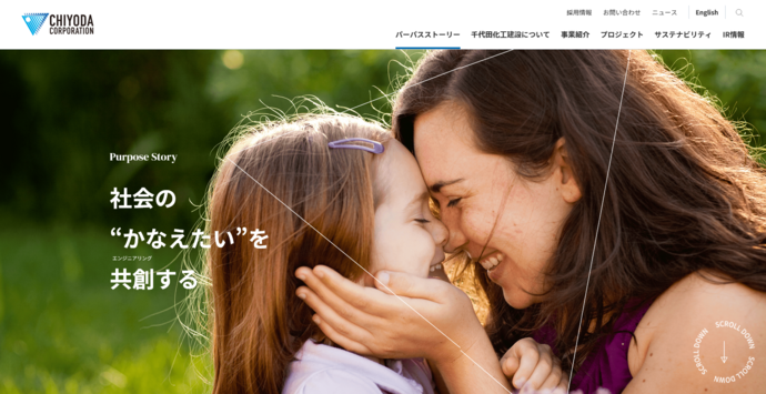 4つ目のトレンドとして重要なのが「ピープル」です。企業の考えや戦略を語るだけでなく、それを誰が、どのような想いと行動で実践しているのかを可視化することで、ブランドやパーパスをより実感を伴ったものとして伝えるアプローチが広がっています。ストーリーの文脈に「ピープル」の要素を重ねている事例として、千代田化工建設が挙げられます。同社のコーポレートサイトでは、グローバルナビゲーションの最初に「パーパスストーリー」が配置されています。「社会の“叶えたい”を共創(エンジニアリング)する」というパーパスを、実際のプロジェクトや社員・チームの取り組みと結びつけて紹介することで、パーパスと日々の実践がどのようにつながっているのかを具体的なストーリーとして伝えています。