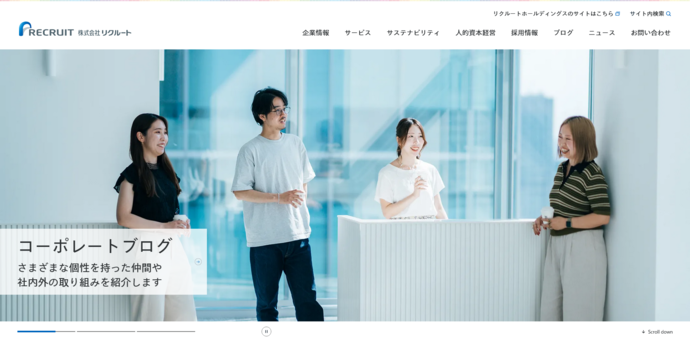 同じくピープルの文脈で紹介されるのが、リクルートです。同社のコーポレートサイト内には、経営層のメッセージなどを発信するブログが設けられています。経営判断の背景や考え方、時には失敗や反省にも触れながら、率直な言葉で情報が発信されており、統合報告書やIR資料とは異なるかたちで、企業の姿勢や人となりが伝わるコンテンツとなっています。