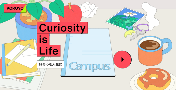 コクヨでは、120周年を機にリブランディングを行い、「好奇心を人生に」というコーポレートメッセージを打ち出しました。本サイトでは、ノートをめくるような操作感に誘われてコンテンツを読み進めていくと、次々と新しい発見やわくわくする展開が現れ、自然と先を知りたくなる構成になっています。その体験を通じて、訪問者は「好奇心に突き動かされながら世界が広がっていく感覚」を味わい、結果として「好奇心を人生に」というメッセージを体験し、実感することができます。