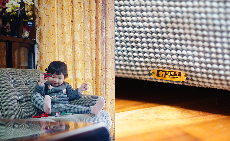 北川(BC):あと余談ですが、私の実家にはカリモク家具のテーブル・ソファセットがあるんです。私が生まれる前から我が家にあったそうですが、両親が結婚当初に家具屋に勧められて購入したと聞きました。購入してからかれこれ45年近く経過している家具ですが、いまだしっかり「現役」です。家族との記憶・思い出の中にその家具はしっかり存在していますね。子供の頃の私はそのソファをトランポリン代わりにしてその上で飛び跳ねていました。今は、私の子供たちが、当時の私のようにソファの上で、楽しそうに飛び跳ねています。そういう家族の思い出とか、暮らしの記憶とかも、伝わるようにデザインしたいな、ずっと思いながら取り組んでいました。